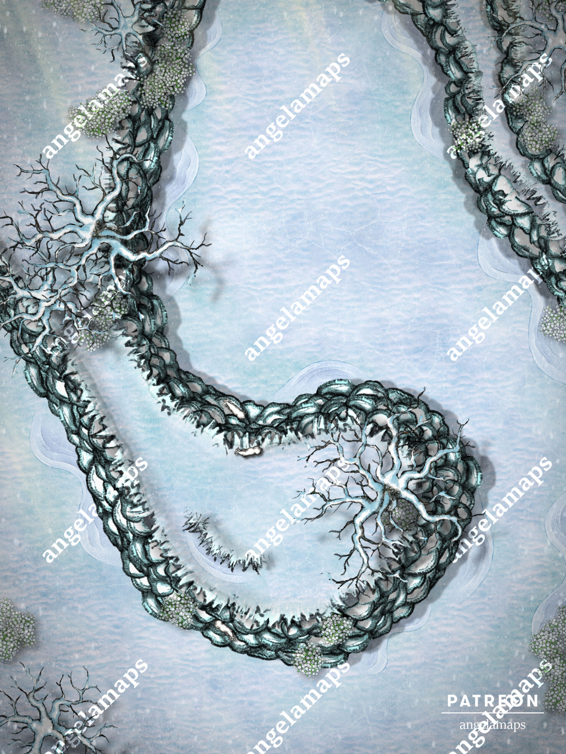 Snowy winter battle map as part of a winter and holiday pack for TTRPGs