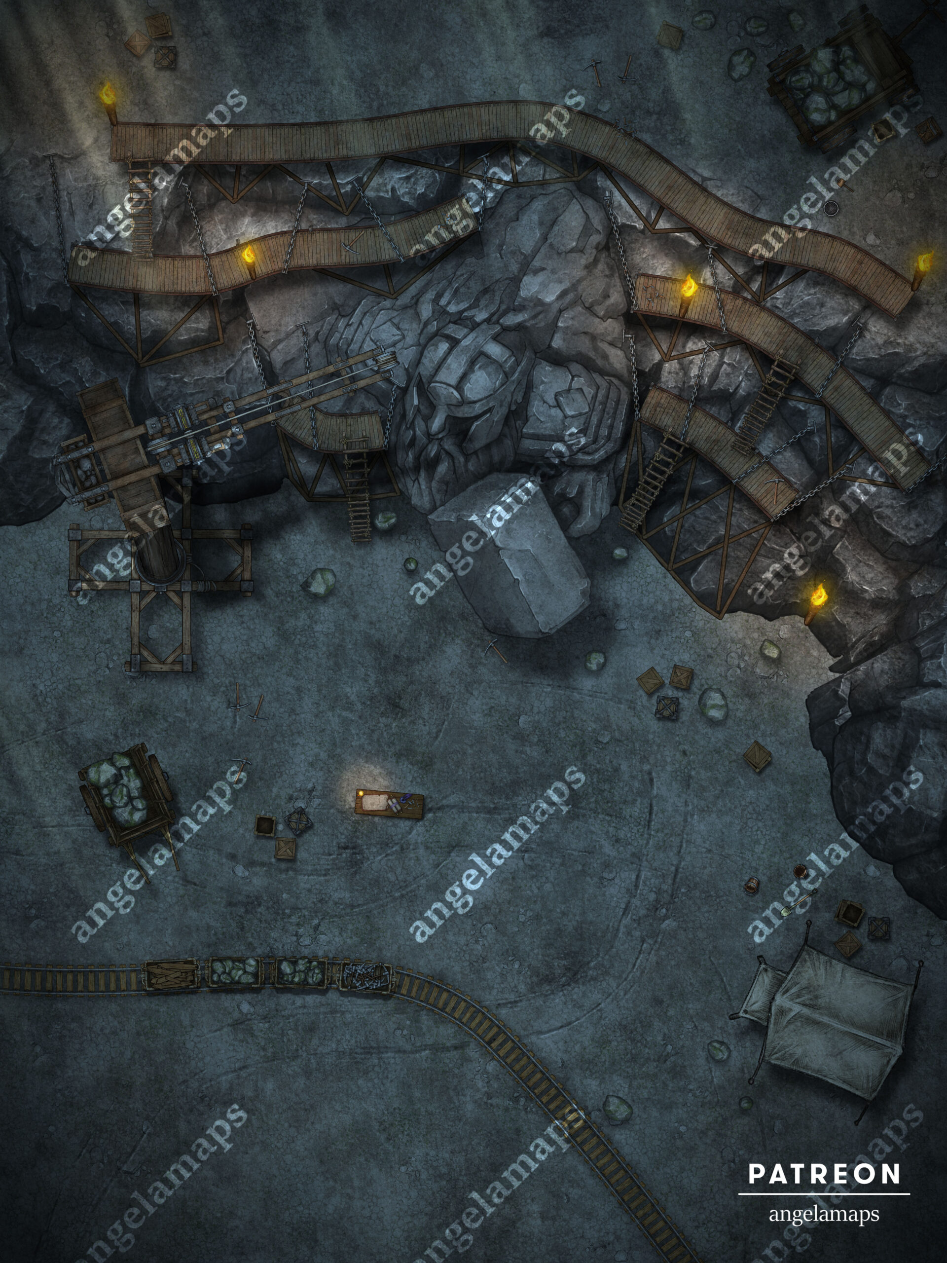 King’s Memorial (night) by Angela · Published January 26, 2026 · Updated January 26, 2026 Battle map featuring a giant statue being built for ttrpgs