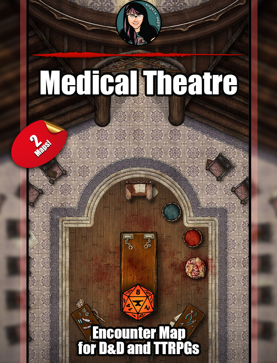 For the learned, the learners, and the morbidly curious, a medical theatre is the perfect place to spend a few hours, watching and listening as the wondrous workings of the body are laid bare for all to witness. Some might call this display a gruesome spectacle that defies good taste and basic decency, if not morality, but what do such benighted souls understand of science?! Available in both a clean(er), academic version and a more blood-drenched one, complete with a body ready for dissection, this map surely can’t be as sinister as all that, unless…it’s alive?!